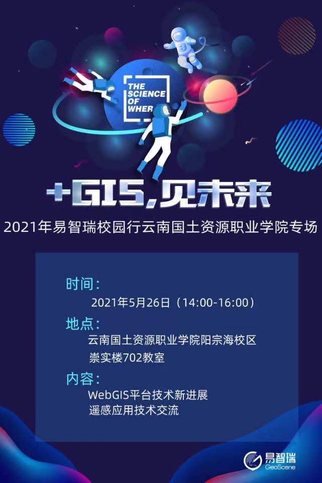 5月26日下午14:00,“2021年易智瑞校园行云南国土资源职业学院专场”活动在新葡8883官网AMG官网举行。易智瑞信息技术有限公司成都分公司陈园园经理一行四人走进云南国土资源职业学院,与新葡8883官网AMG官网师生就WebGIS平台技术及遥感应用技术的新进展进行了交流分享。新葡官网沈金祥、许林艳、向伶、和春兰、陈应跃老师及19级测绘地理信息技术、摄影测量与遥感技术专业学生参加了本次活动。