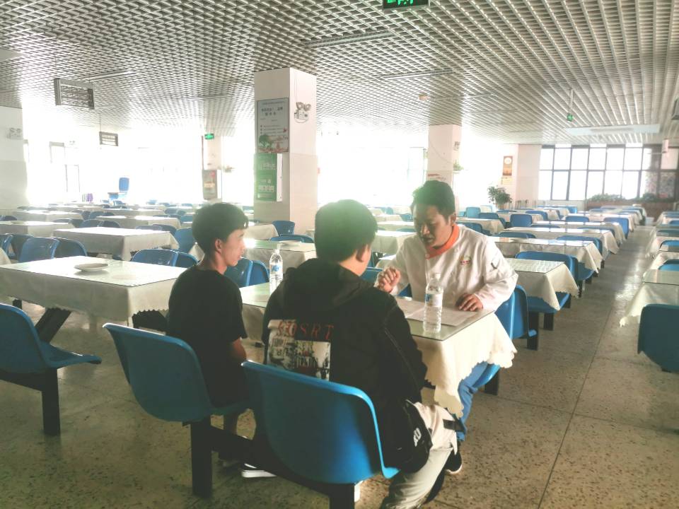 在后勤服务中心处长汪朝飞老师的积极联系与帮助下,品馨园食堂张永军师傅向两位同学提供了勤工助学的机会,并免费供应他们的一日三餐。在食堂,张师傅了解了两位同学的基本情况,带领他们熟悉了食堂环境与工作流程,给他们强调了服务态度、到岗时间、服装、卫生等方面的注意事项,并叮嘱他们在勤工助学之外更要刻苦学习,努力上进。