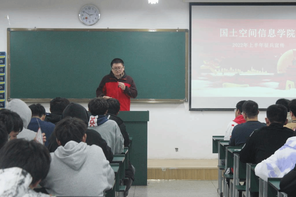 最后,晋老师向同学们提了几点要求与建议,一是要及时关注全国征兵网站信息和学校武装部的通知,全面了解掌握有关政策和时间安排;二是要在平时的学习与生活中不断锻炼自己,提升自身素质与能力,为顺利参军做好身体、心理等准备;三是要及时将报名信息、各项纸质材料按时交到学院,以便后期各项手续及补贴的办理。