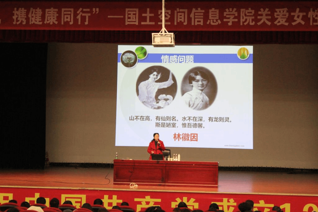 像雾像雨又像风——爱情。韩教授以一个“爱”字的构成引导师生们思考爱情的意义,并以李兰娟、郑树森夫妻的爱情故事为例,强调要把正确的价值观和高尚的道德品质作为择偶的首要条件,同时对待爱情要严肃负责、忠贞专一。另外,韩教授以自己的女神林徽因为例,向师生们介绍了与异性交往的四个原则,即自然原则、文明原则、适度原则、恰当原则。