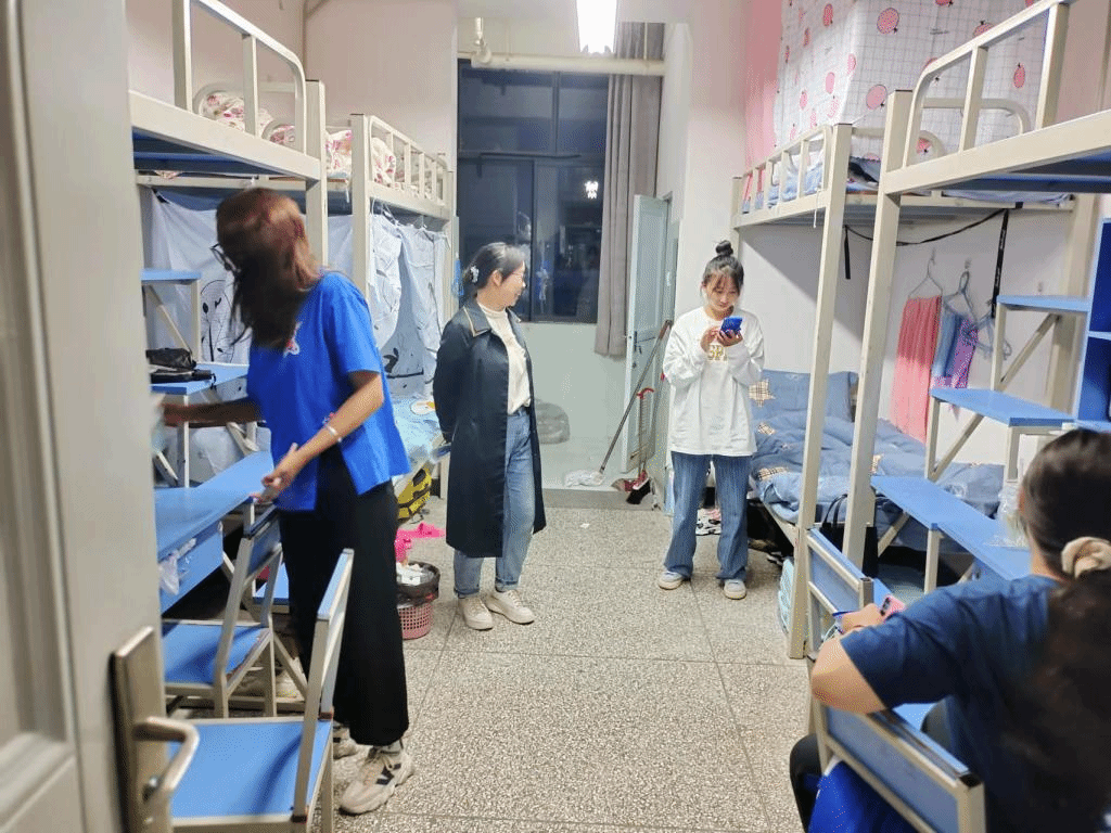 迎新当晚,学院领导与新生班主任、辅导员走访了学生宿舍,慰问学院新生。走访过程中,学院领导就生活饮食、住宿环境及宿舍安全等方面与新生进行了亲切的交谈,并叮嘱同学们要努力营造温馨融洽的宿舍氛围,提高安全防范意识,保管好个人财物。这让同学们感受到了来自学院领导老师最亲切的关怀和问候,拉近了新生与学院老师的距离,增进了师生情感。