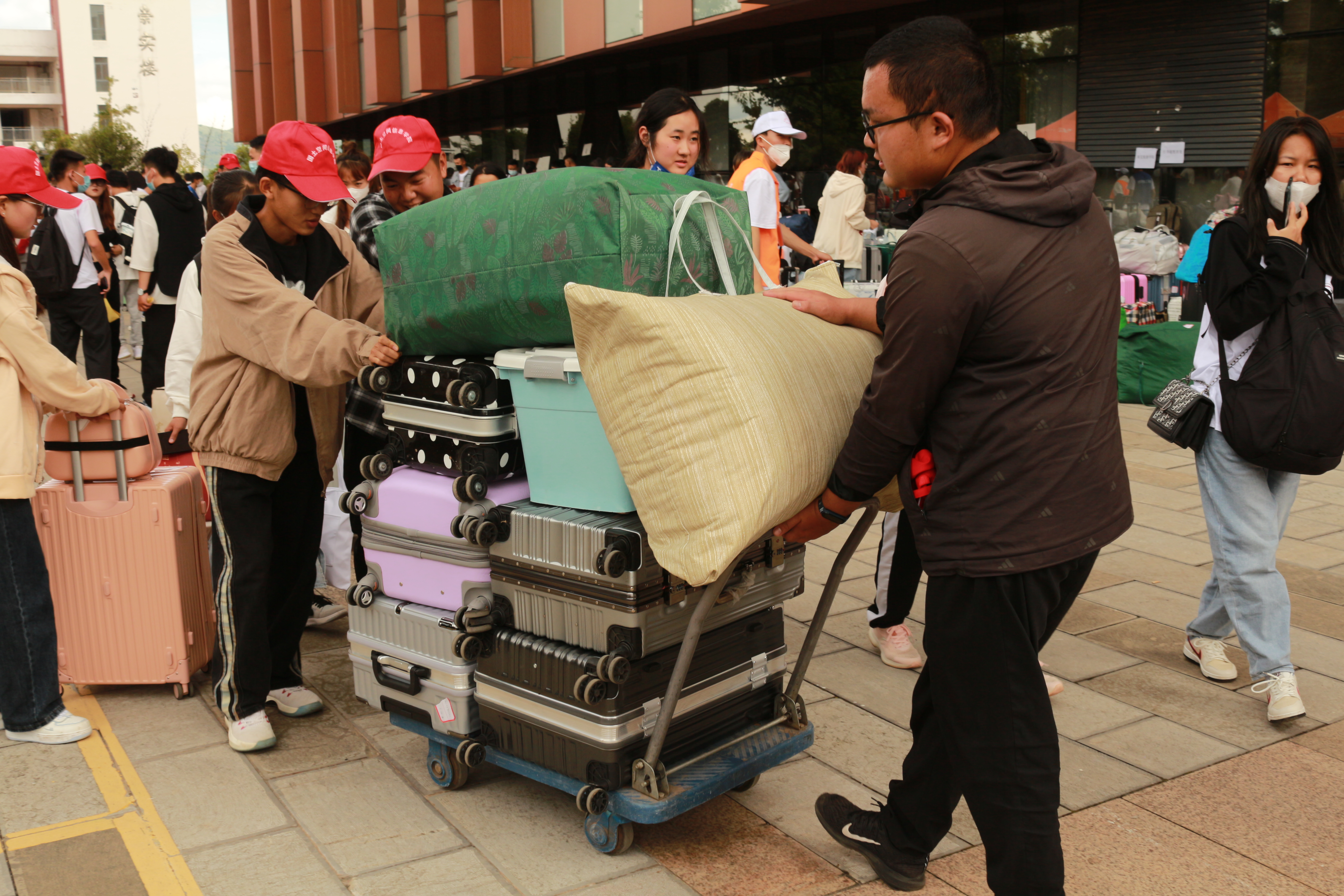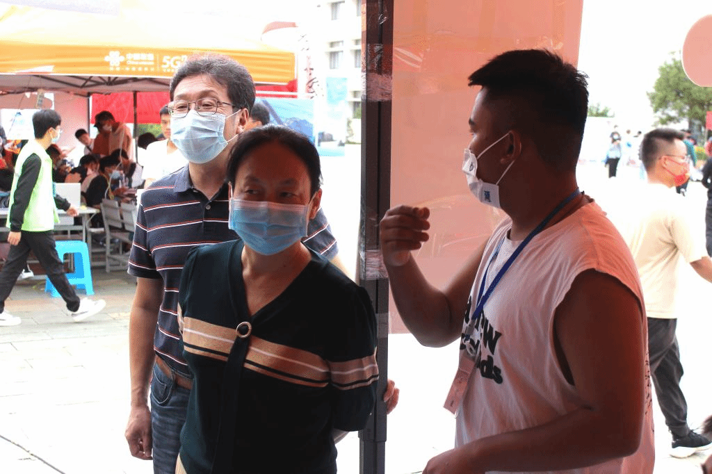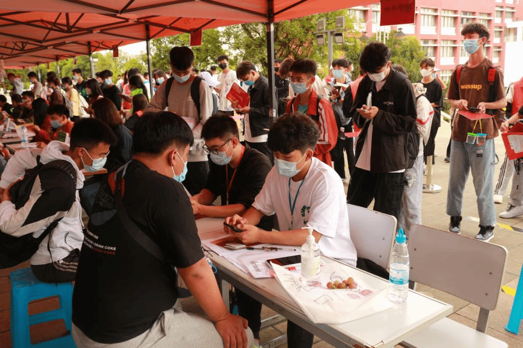 虽然天气时而雨时而晴,但大家仍然用最温暖的笑容迎接新同学,累并快乐着,师生们坚守着岗位是想要为新同学提供更好的服务,让新生与家长多份安心。