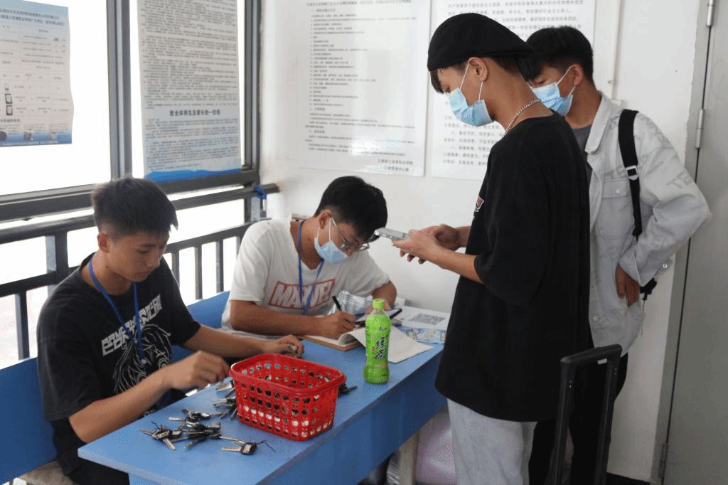 老师们和志愿者们热情周到的服务很快消除了新生们初来乍到的陌生感。一位办理完报到手续的新生说“一下车站,热心的学长学姐就帮着我搬行李,给了我一种从未有过的亲切感。”