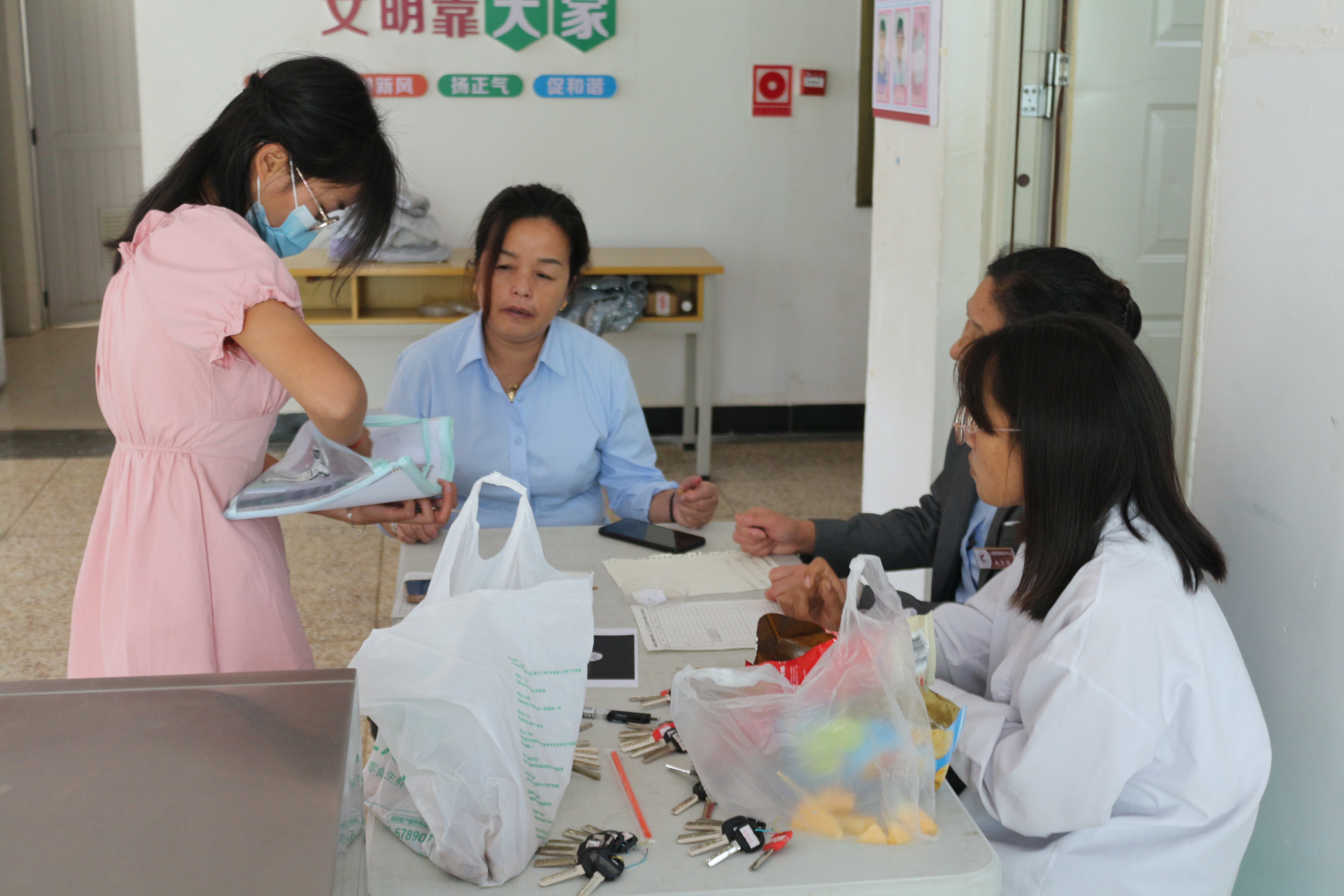 8月27日上午,学院团总支学生会成员及志愿者们早早来到新生接待点再次查看现场布置情况,确保各项准备工作做好。