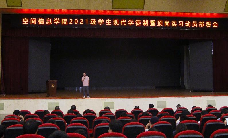 动员会上,沈映政老师向同学们介绍了工学云打卡周记、月报提交相关操作,并结合当前就业形势,鼓励同学们通过实习练就本领,应对就业挑战,分享了选择实习单位的方法,介绍了就业协议的签订要求,叮嘱同学们在实习过程中要注意自身安全,严格遵守学校实习单位的管理制度。