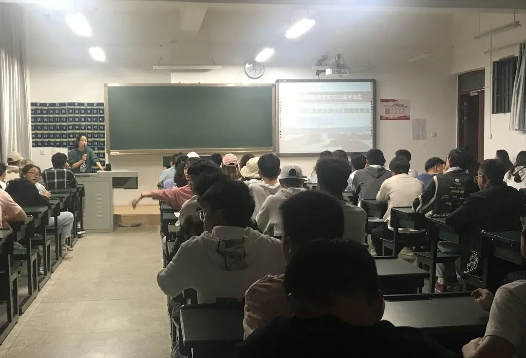 辅导员首先用近5年全国大学生毕业、就业数据比对,让同学们认识到大学生就业形势的严峻性;其次,宣传普及了国家促进大学生就业的“六保”“六稳”政策,让同学们充分了解国家对大学生服务基层、自主创业、参军入伍和继续升学等方面的优惠政策,以及如何运用相关政策。同时,全面梳理了大学生积极就业的各种途径,激发学生努力掌握专业技能,着力提升个人竞争力的欲望。再次,详细介绍了继续升学、参加公考或事业单位考试、服务基层、自主创业的基本要求和注意事项,鼓励同学们多元化就业,努力找到适合自己的职业岗位和发展方向。最后,针对同学们面临的顶岗实习岗位选择、专升本备考、公考和事业单位备考、自主创业等问题,和辅导员和班主任与同学们面对面展开交流,帮助同学们答疑解惑。