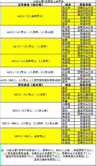 在这个生机盎然的夏季,新葡8883官网AMG官网2019级国土资源调查与管理7班的同学们在2022年专升本考试中捷报频传,很多同学都收获了自己的成功之花。7班共有58名同学,其中参加专升本考试50人,43人上线,42人已被录取,录取率高达84%。其中,云南农业大学录取7人,西南林业大学录取7人,楚雄师范学院录取6人,昭通学院录取20人,云南民族大学录取1人,昆明文理学院录取1人。他们不仅创造了新葡8883官网AMG官网新记录,也为自己的人生扬起了新帆。