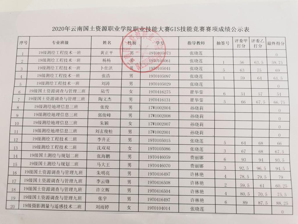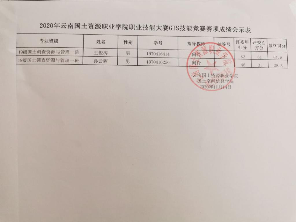 新葡8883官网AMG官网2020年GIS技能大赛成绩公示
