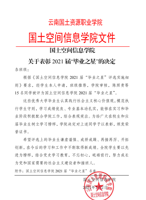 新葡8883官网AMG官网关于表彰2021届“毕业之星”的决定