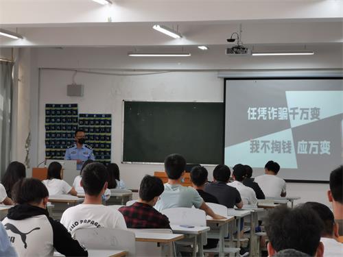最后,张警官向同学们讲授了“防电信诈骗十守则”、“预防电信诈骗五不要”、“防电信诈骗知识六个一律”、“防电信诈骗知识八个凡是”以及被骗后的补救措施。