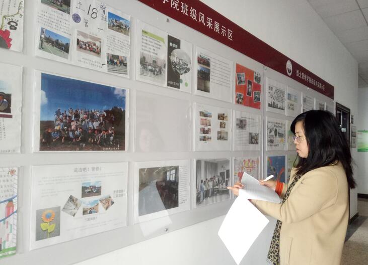 学院18级、19级各班经过二十多天的精心创作,于12月23日下午统一将作品放入学院三楼“班级风采展示区”内,并由学院党总支副书记张俊妍老师、学生会宣传策划部同学代表进行评分,最终评出一等奖1名,二等奖2名,三等奖3名。