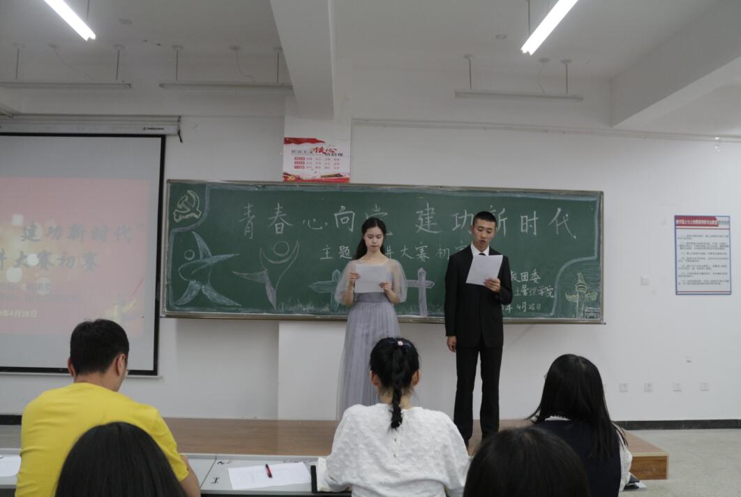 为激励和引领大学生,大力弘扬以爱国主义为核心的伟大民族精神,增强同学们爱党敬党,不忘初心跟党走的理想信念。2019年4月28日晚7:00,国土管理学院在堪物楼B316举行了“青春心向党,建功新时代”的主题演讲比赛。出席此次演讲比赛的老师有国土管理学院学工办主任魏贵东老师、团支部书记张桂枝老师、辅导员杨骐璟老师。参加此次演讲比赛的参赛选手以及学院观众参加了此次演讲比赛。