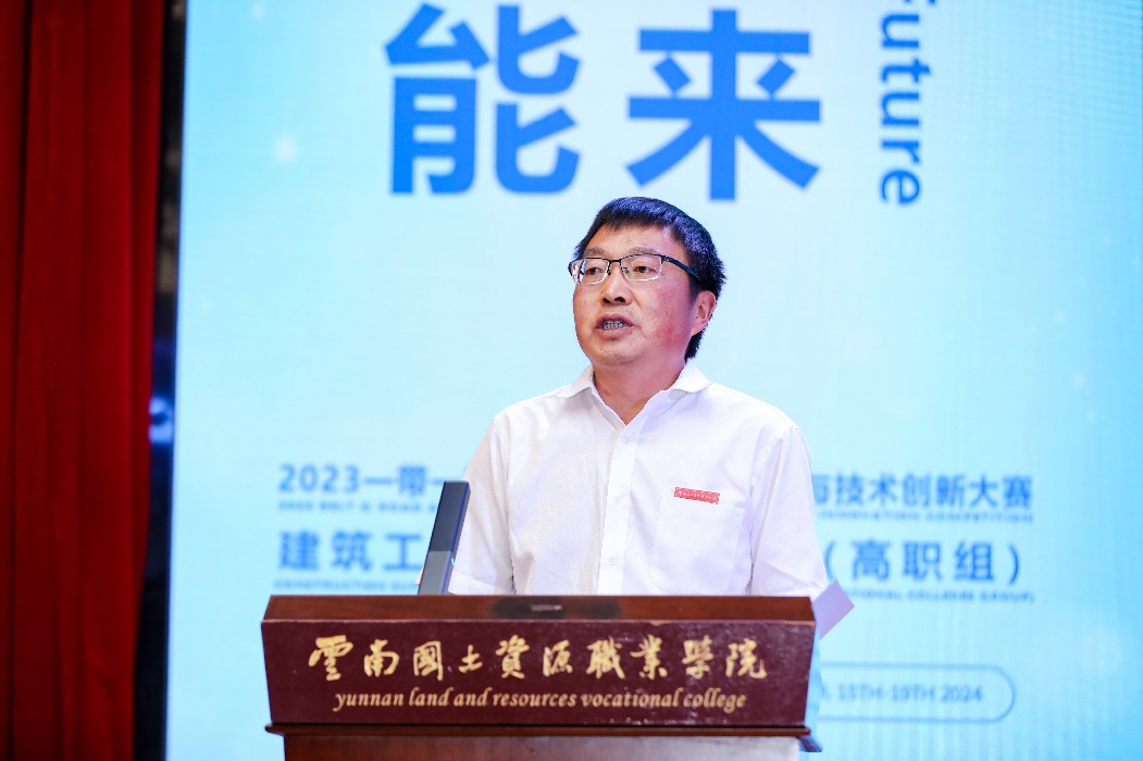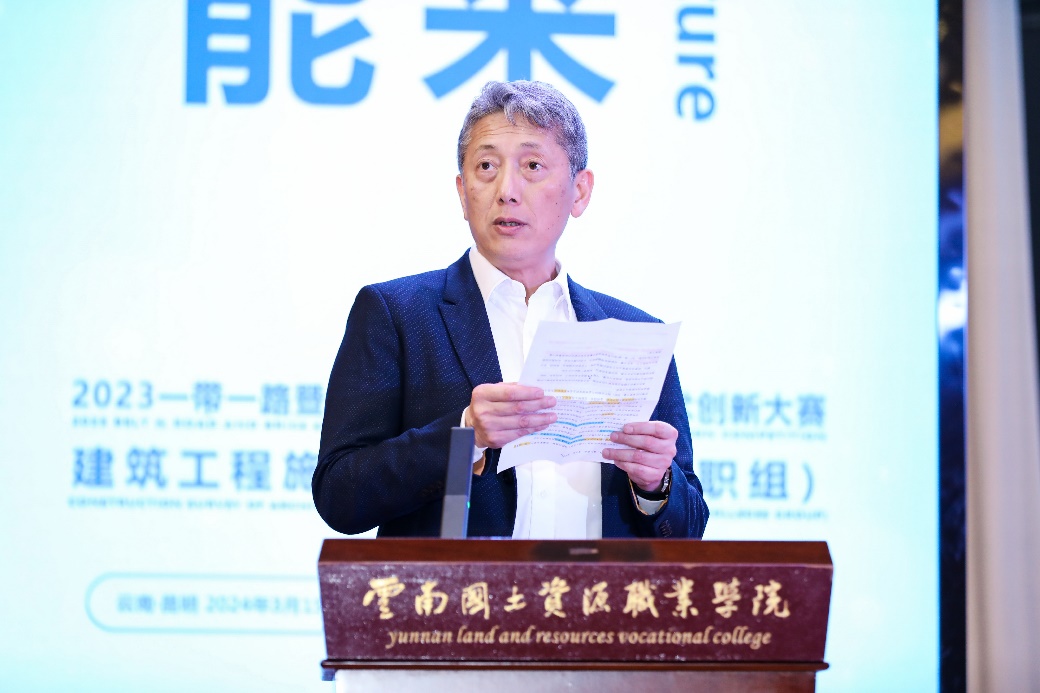 云南省教育厅职业教育与成人教育处副处长王勇致辞。他表示此次大赛是贯彻落实习近平总书记关于职业教育重要讲话精神的生动体现,是同学们展示学习成果,交流学习经验的重要机遇,是展示云南职业教育办学质量的重要窗口。今后,云南将继续积极响应、主动作为,加强中外职业教育交流与合作,不断推动职业教育向更高水平更深层次发展。