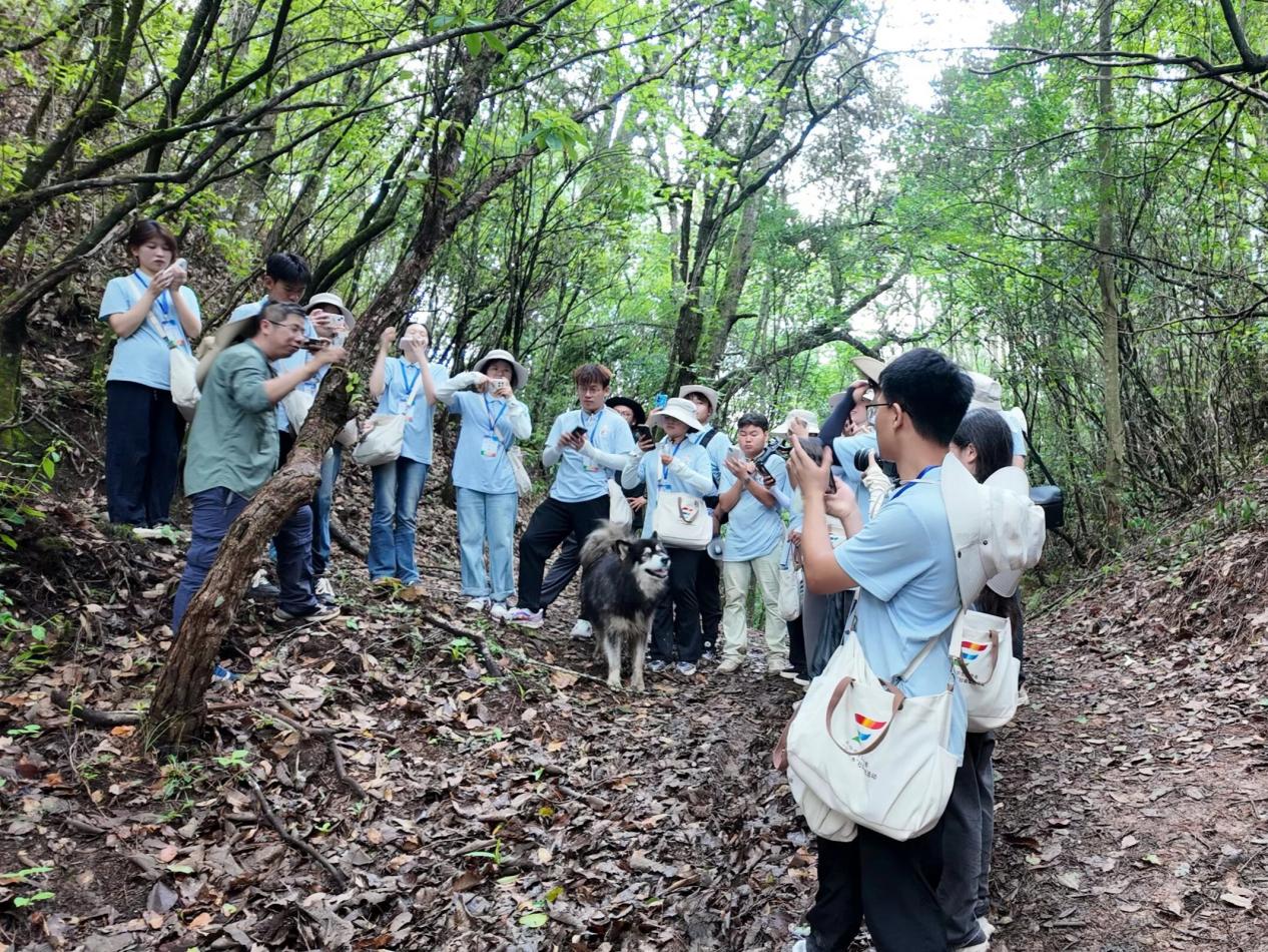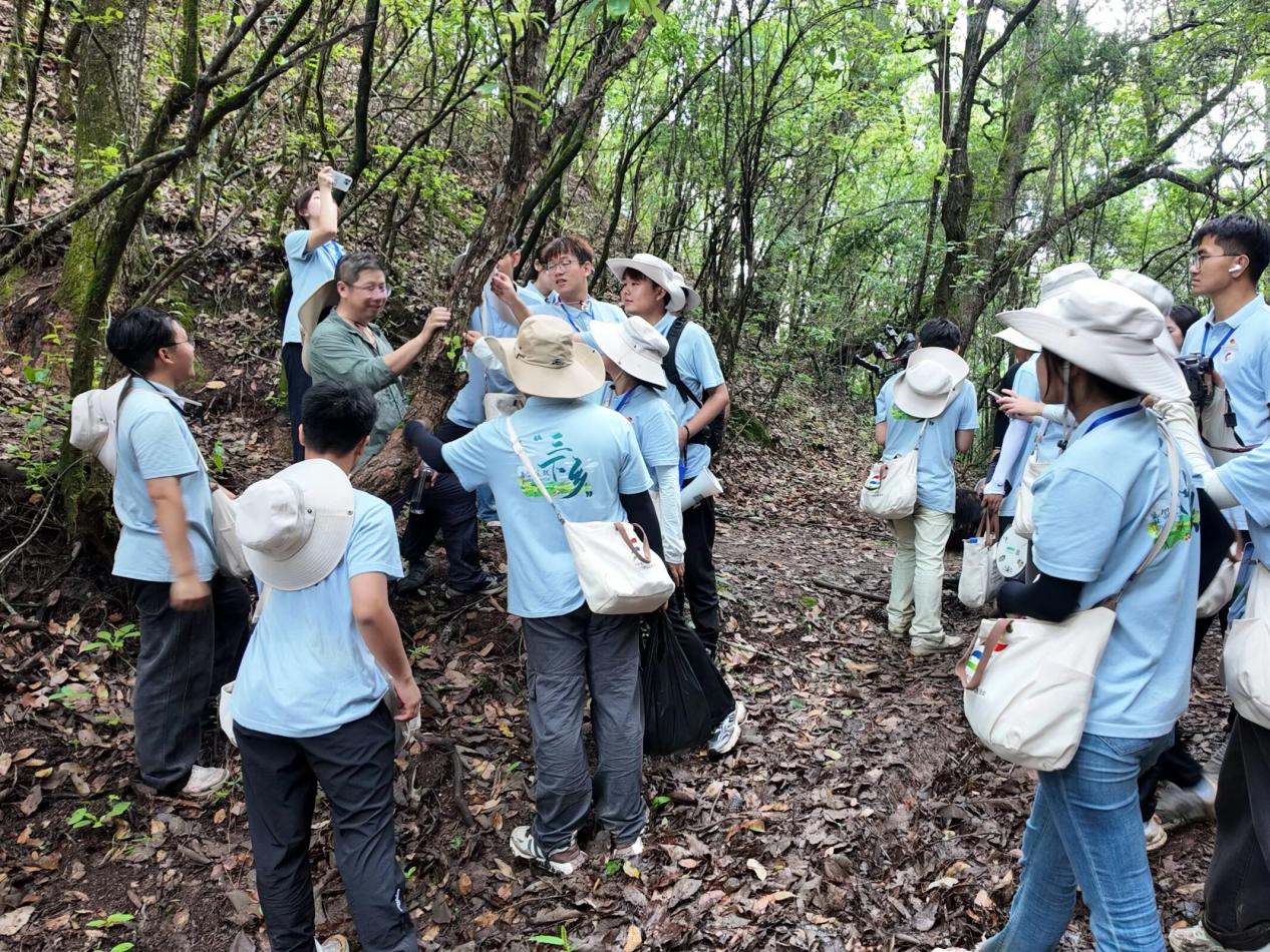上午,团队成员在保护区工作人员的带领下从苗尾管护站出发,途经保护区的核心区域,新葡8883官网AMG官网副院长沈金祥向同学们讲解典型多种野生植物的生长状况,同学们通过这场别开生面的“行走课堂”亲自触摸、观察树种,切身感受到了保护区内的生物多样性。