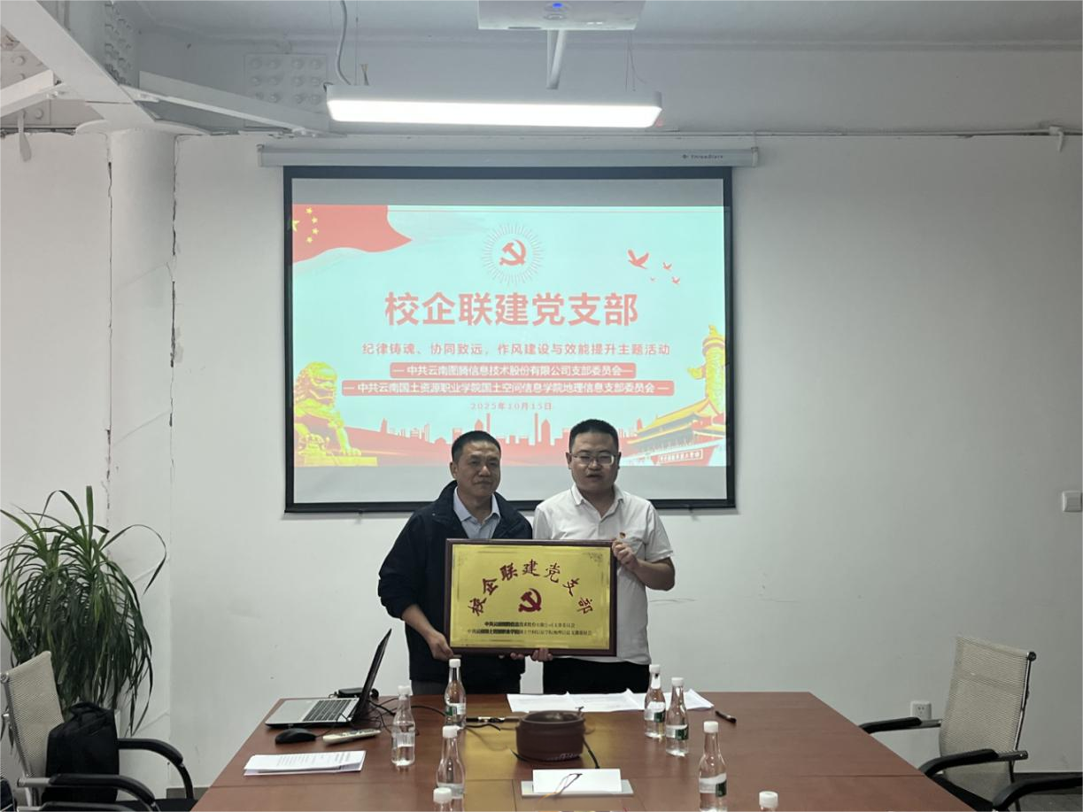 10月15日学院地理信息党支部与云南图腾信息技术股份有限公司党支部开展校企党支部联建主题党日活动。学院党委副书记和万荣、云南图腾信息技术股份有限公司党支部书记王小泉,学院地理信息党支部书记武玉斌及支部党员代表参加本次活动。
