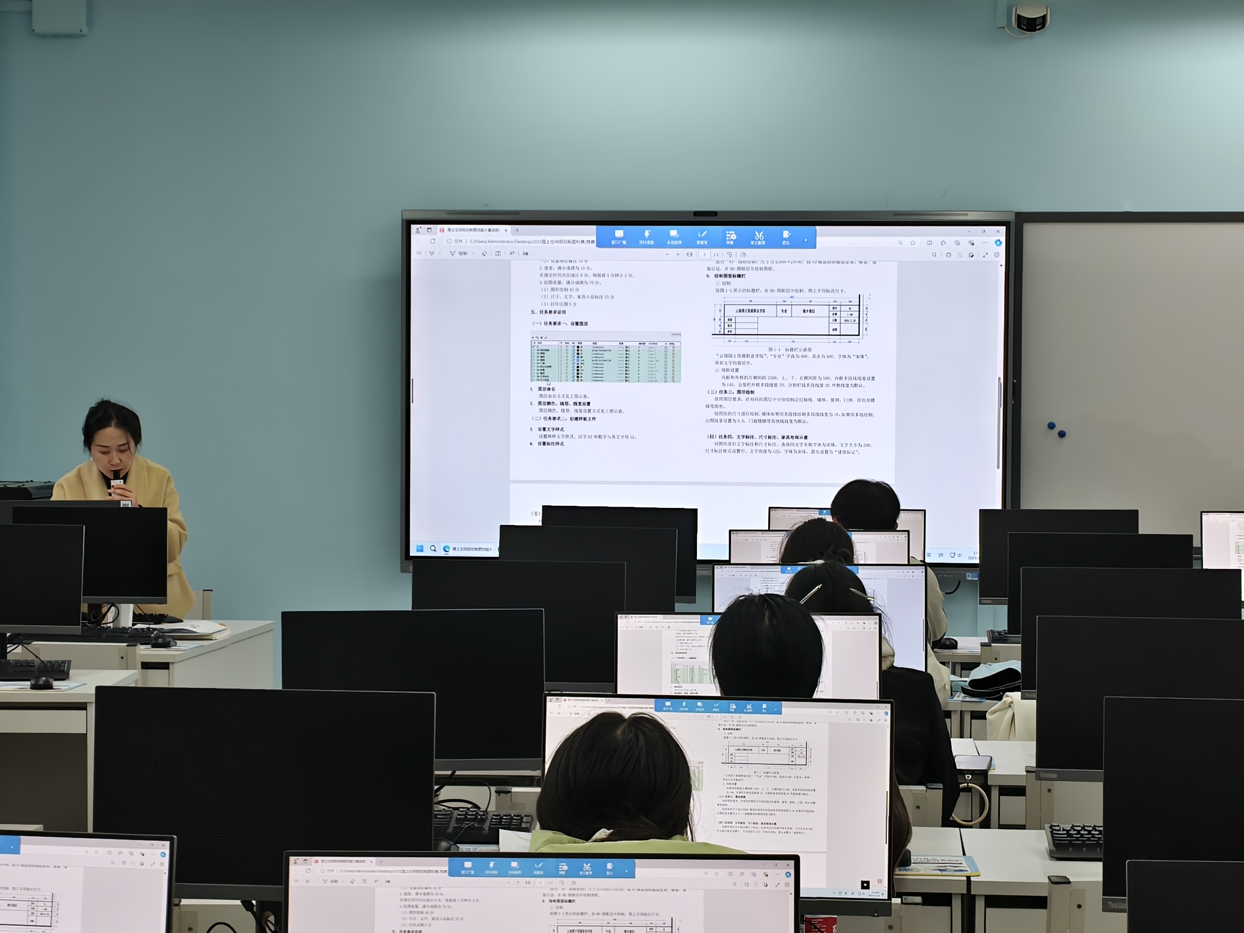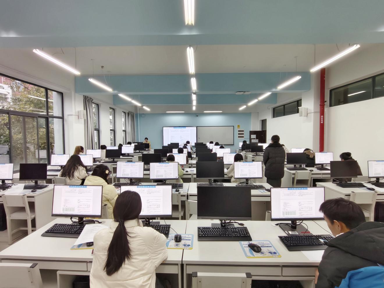 比赛现场秩序井然,气氛紧张而热烈,键盘敲击声、鼠标点击声此起彼伏,选手们时而俯身细察图纸细节,时而凝神调整制图参数,指尖在键盘上精准敲击指令,每一个动作都凝聚着日常训练的积累,每一份成果都承载着对专业的热爱与执着。监考教师全程坚守岗位,对选手反馈的问题及时响应、妥善解决,全力保障竞赛公平、公正、有序推进。