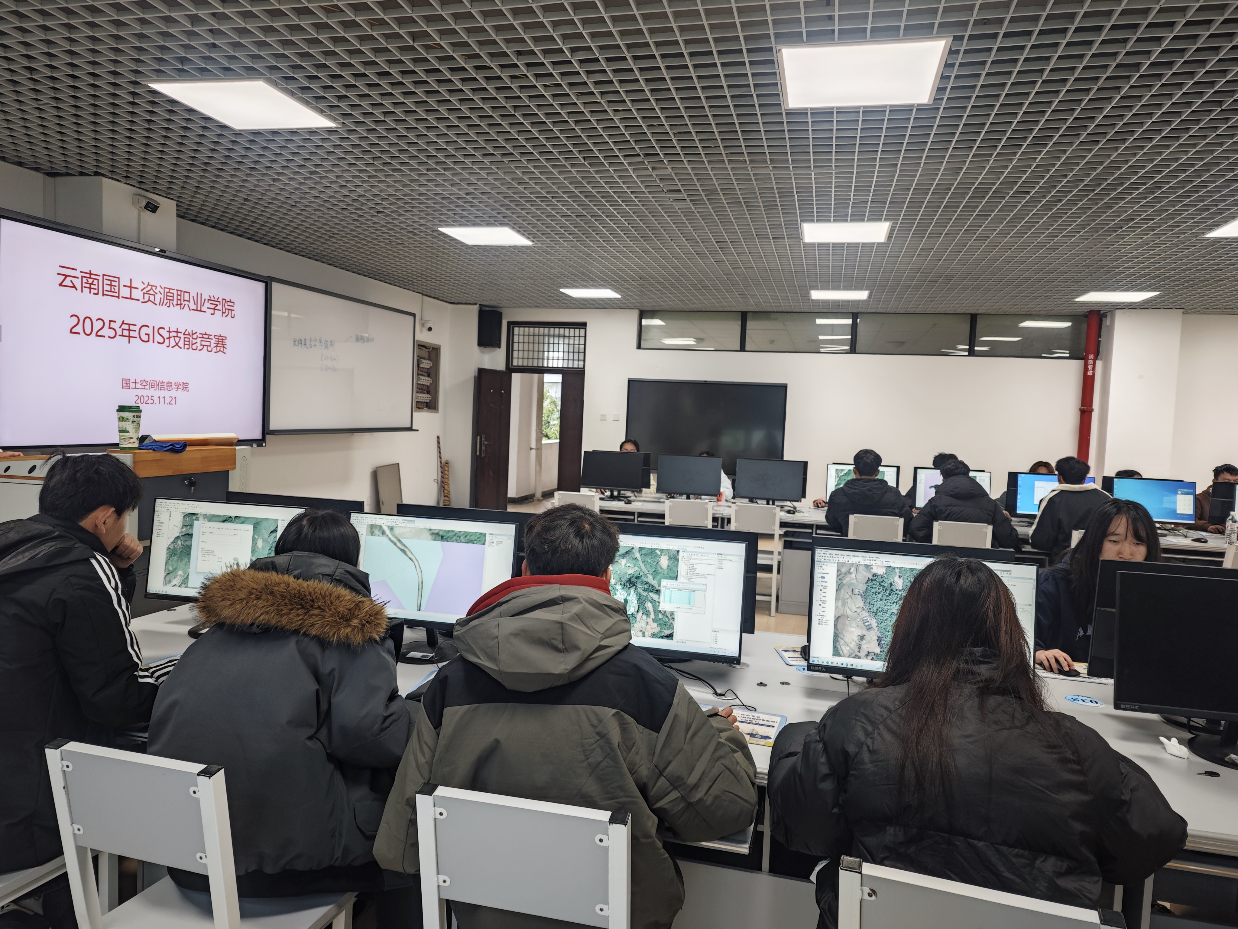 为深化教育教学改革,强化学生专业技能与实践能力培养,营造“以赛促学、以赛促教、以赛促改”的浓厚氛围,新葡8883官网AMG官网于11月21日上午,在学院的实训中心成功举办了技能竞赛月系列活动之“GIS技能竞赛”。本次竞赛旨在检验和提升学生在国土空间信息技术应用方面的核心能力,激发学习热情,锻造适应新时代国土空间治理需求的复合型技术技能人才。来自国土资源调查与管理、城乡规划、地籍测绘与土地管理、测绘地理信息技术、国土空间规划与测绘、智慧城市管理技术、无人机测绘技术等专业的75名学子同台竞技。