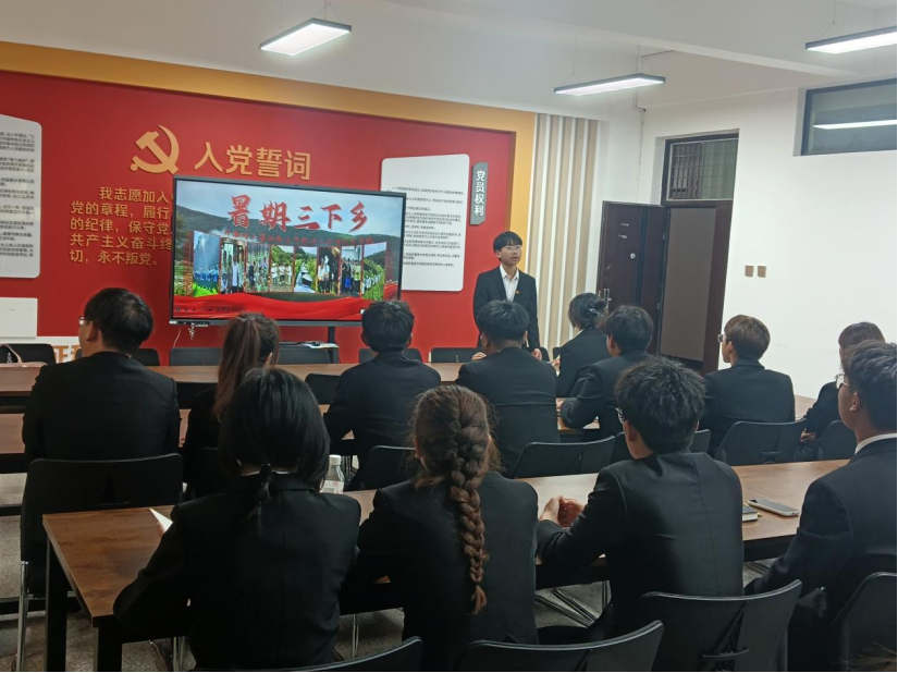 会议伊始,何志仙同学为大家介绍了暑期三下乡活动共护青山,保护动物多样性以及铸牢中华民族共同体意识等主要目的,随后分享了本次赴云龙、武定三下乡活动的一些主要任务,以及对本次活动的体验感悟,让大家更清晰地了解到三下乡实践活动的意义所在,同时也对青马学员的成长也有着重要意义。