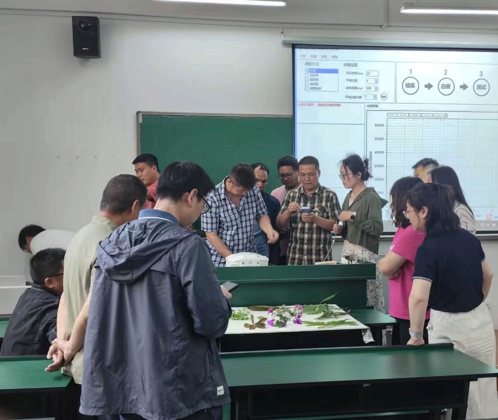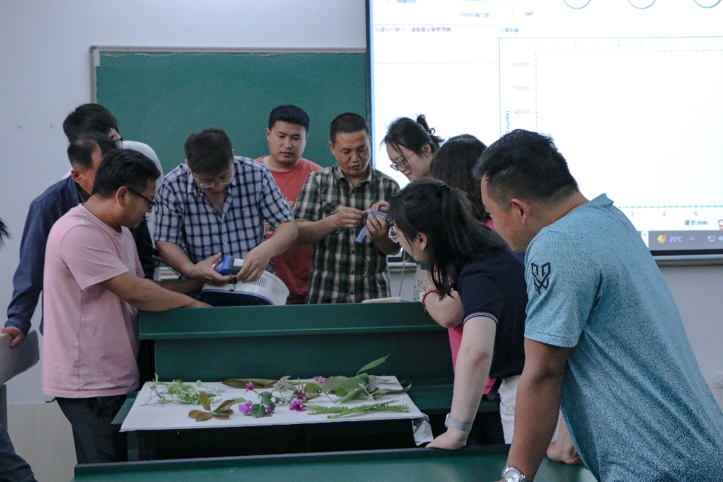 在实操环节,沈老师认真指导与会老师操作光谱仪、手持激光雷达等设备仪器。经过两个多小时紧张而有序的培训,老师们对光谱仪的操作方法和注意事项有了更深刻的理解和掌握。