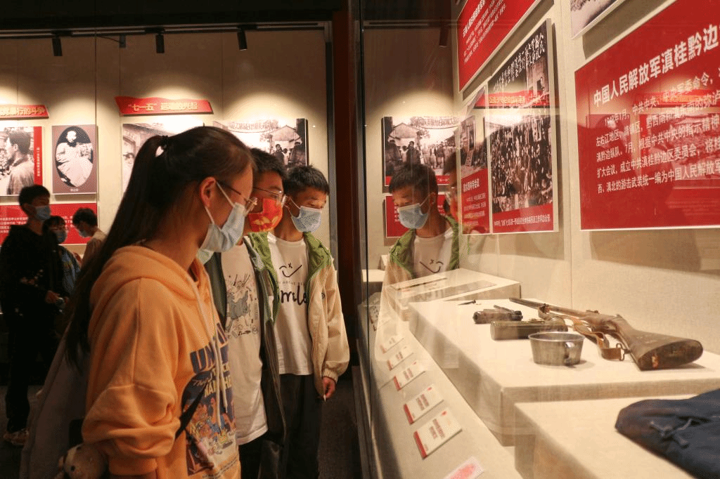 在武老师的带领下,同学们依次参观了《浴血奋斗:为云南解放而斗争》、《改天换地:走上社会主义康庄大道》、《日新月异:中国特色社会主义的云南实践》、《跨越发展:奋力谱写中国梦的云南篇章》等四个展厅。参观过程中,同学们时常停下来阅览各式照片、遗物、书籍和战斗武器等珍贵文物,近距离地体验革命先辈的经历,并相互交流讨论,共同感受曾经那段烽火硝烟、激情澎湃的峥嵘岁月。