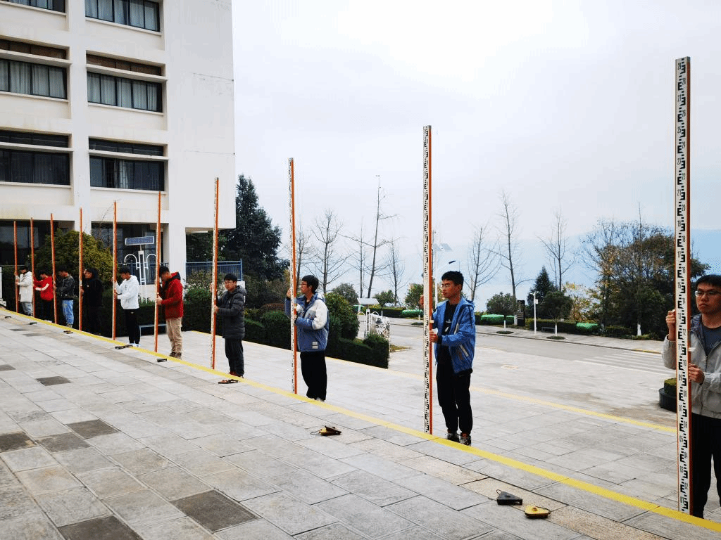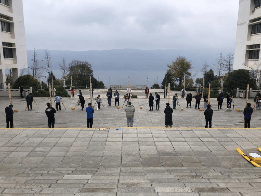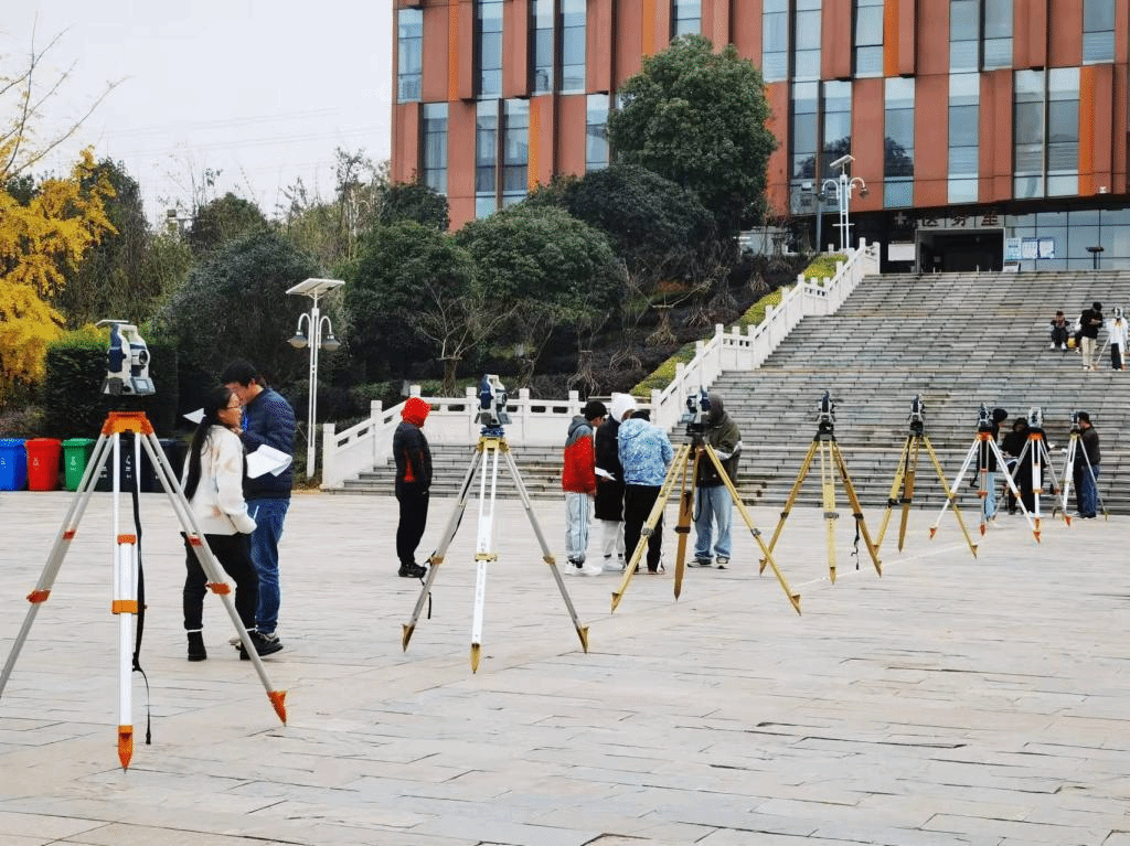 理论考试结束后,同学们来到国土广场进行实操考试。纵然天气寒冷,但同学们丝毫不受影响,只见他们动作娴熟,精准计算,用复杂的公式将采集到的数据计算出准确的数值来,展现了最佳的操作水平和考试状态。