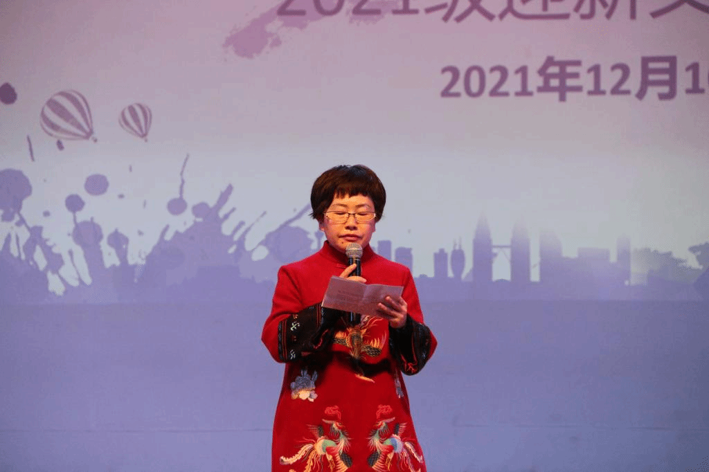 学院党总支书记高昆上台致辞,她代表学院全体师生向到场的领导嘉宾及新同学表示热烈欢迎,分享了本学期以来学院同学在校取得的各项好成绩,用王国维的人生三境界来喻示大学生在校要做好人生规划、不怕辛苦磨难才能有所收获,并为同学们送上衷心的祝福和祝愿晚会圆满成功。