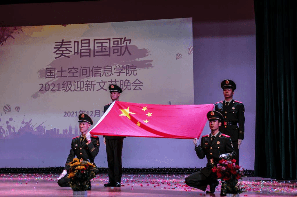 晚会伊始,大学生艺术团、沈家国同学为师生们带来了精彩的暖场表演。随后,在庄严的国歌声中,本次晚会拉开了序幕。