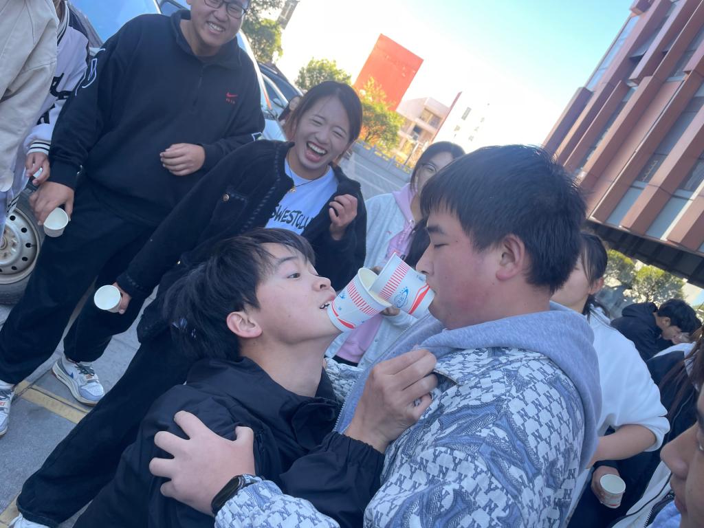 紧接着的纸杯传水游戏更是考验了同学们的默契与协调能力。同学们需要在不使用手的情况下,将水从自己的水杯传递到队友的杯子里,只见他们小心翼翼地倾斜身体,确保水流平稳地从自己的纸杯倒入下一位队友的杯中。他们的眼神交流、微笑示意,每一个细微的动作都透露出团队间的无声沟通。