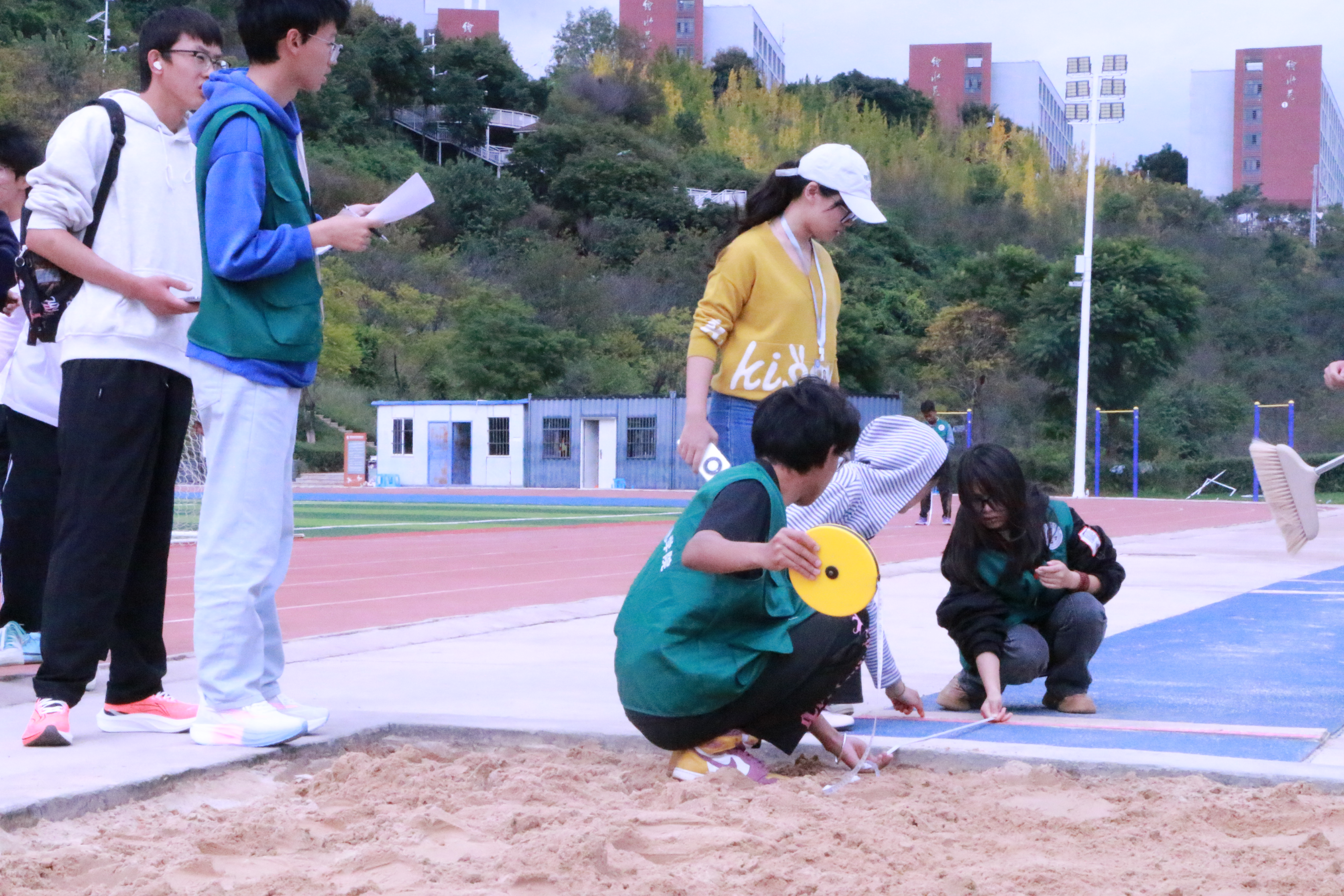 沙坑跳远赛场,选手们助跑、起跳、落地,连贯的动作中凝聚着力量与技巧,沙坑中扬起的沙尘记录着每一次突破自我的尝试。