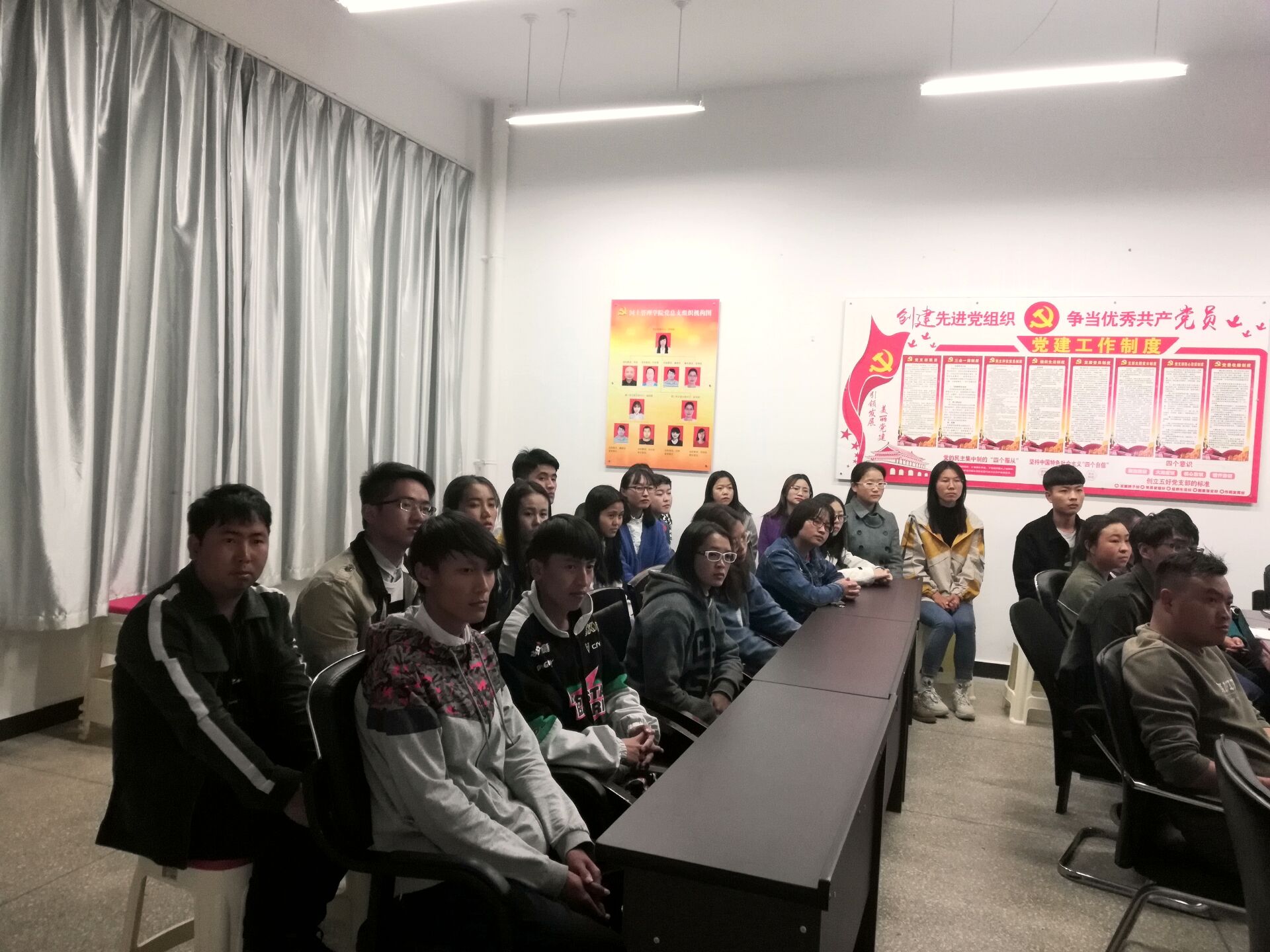 接中共云南省委组织部通知,2019年2月27日晚,国土管理学院党总支在勘物楼B211会议室组织观看“云岭先峰”夜校访谈节目,学院全体党员教师、17级入党积极分子观看了此次访谈节目。