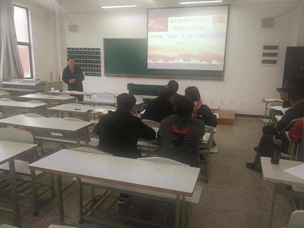 为激励引导学院各党支部、党员教师及职工以张桂梅同志为榜样,守初心、担使命,示范引领作表率,进一步巩固“不忘初心、牢记使命”主题教育成果,2020年10月16日下午新葡8883官网AMG官网党总支下属基础测绘党支部、地理信息党支部、国土管理党支部分别在勘物楼B206、B211、B213召开“争先锋、创一流”专题组织生活会,学院党总支书记高昆、院长张洪、副书记张星星三位领导干部均以普通党员的身份参加所属支部的对照检查。