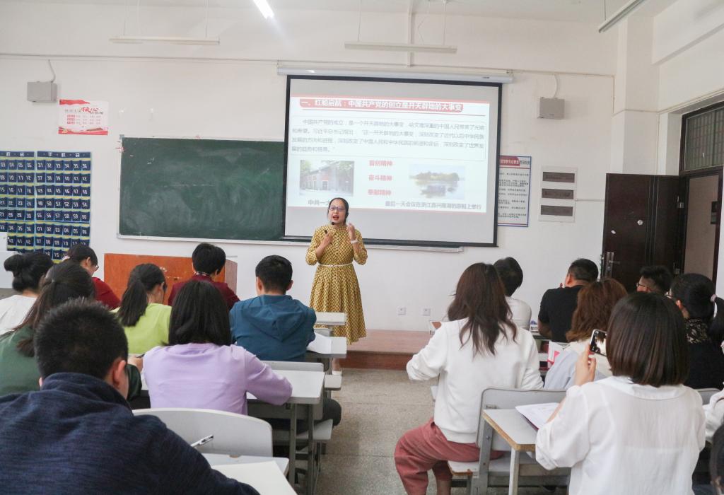 4月21日中午,马克思主义学院副院长张颖莅临新葡官网,为新葡官网全体教师、18级学生预备党员、19级入党积极分子以“学好党史,培根铸魂”为题进行专题宣讲,张老师以“红船启航”讲述了中国共产党创立的艰辛,并总结了“红船精神”的内涵即首创精神、奋斗精神和奉献精神。接着,她用“13”,“72”,“94”这三组数字引出了中国共产党从“站起来”到“富起来”再到“强起来”的发展历程。随后,她又结合典型事例讲述了“中国共产党为什么能”,让在场的老师同学们对党有了更深刻的认识和理解。最后,张老师结合新葡官网专业课向新葡官网全体教师介绍了“课程思政”是什么、为什么、怎么干,这使新葡官网老师深受启发,进一步明确了今后针对所授课程开展“课程思政”的目标和方向。