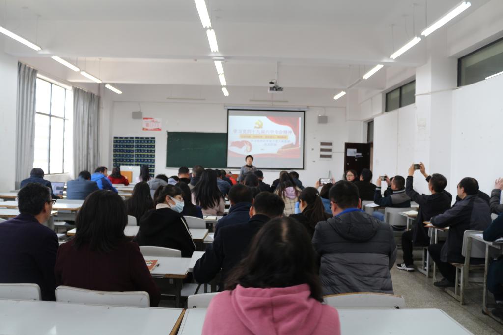 随后,陈瑞平老师讲授了“高举旗帜 坚定核心 牢记嘱托 不懈奋斗——云南省第十一次党代会精神学习”。他介绍了云南省第十一次党代会的主要内容和重要意义,强调要牢记习近平总书记考察云南重要讲话精神、重要指示批示精神和党中央的决策部署,坚持6个基本原则,努力实现“7个更”的奋斗目标。在讲到作为高校教师应如何做时,他谈到高校教师要内聚于胸、锤炼忠诚、坚定信念,外化于行、锁定目标、真抓实干,紧跟时代步伐,让十九届六中全会精神、省第十一次党代会精神在课堂教学、理论研究、学生培养等方面闪闪发光。
