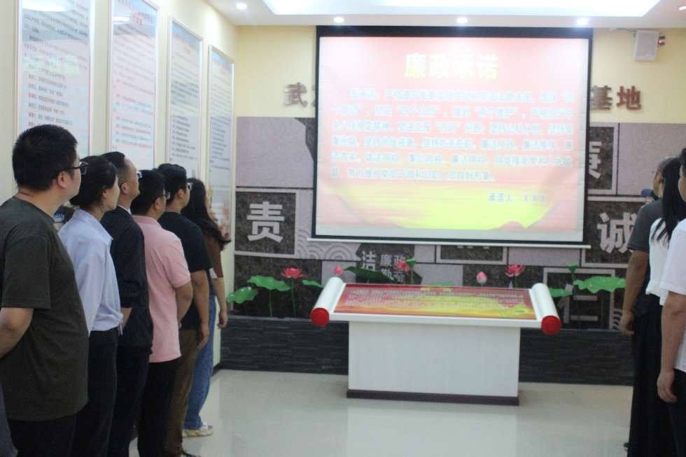 在中共武定廉政教育基地,老师们通过图文解说、视频展示等形式,深入学习了中华人民共和国成立以来国家领导人关于反腐倡廉工作的指示精神和党的反腐历程。通过回顾党的十八大以来违犯党纪国法的典型案例、宣读廉政承诺及重温入党誓词,老师们深刻认识到了廉洁自律的重要性,进一步筑牢了拒腐防变的思想防线。