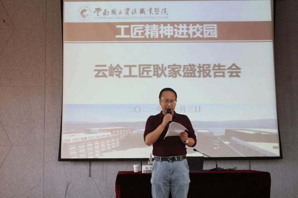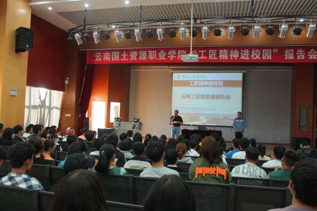 为深入贯彻落实习近平总书记关于弘扬工匠精神和劳模精神的讲话精神,营造“技能宝贵、劳动光荣、创造伟大”的浓郁氛围,进一步激励广大青年学生走技能成才、技能报国之路,让劳模工匠精神成为学生成长成才的精神动力。云南国土资源职业学院于11月3日14:30在红山讲堂举办“工匠精神进校园——云岭工匠耿家盛报告会”,此次报告会由宣传部和新葡8883官网AMG官网承办,统战部协办。参加报告会议的有:云南国土资源职业学院党委宣传部部长茹华所老师,云岭工匠秦忠老师,新葡8883官网AMG官网党总支书记高昆老师,新葡8883官网AMG官网团总支负责人马佳老师以及各二级学院学生代表。报告会由茹华所老师主持,耿家盛老师主讲。