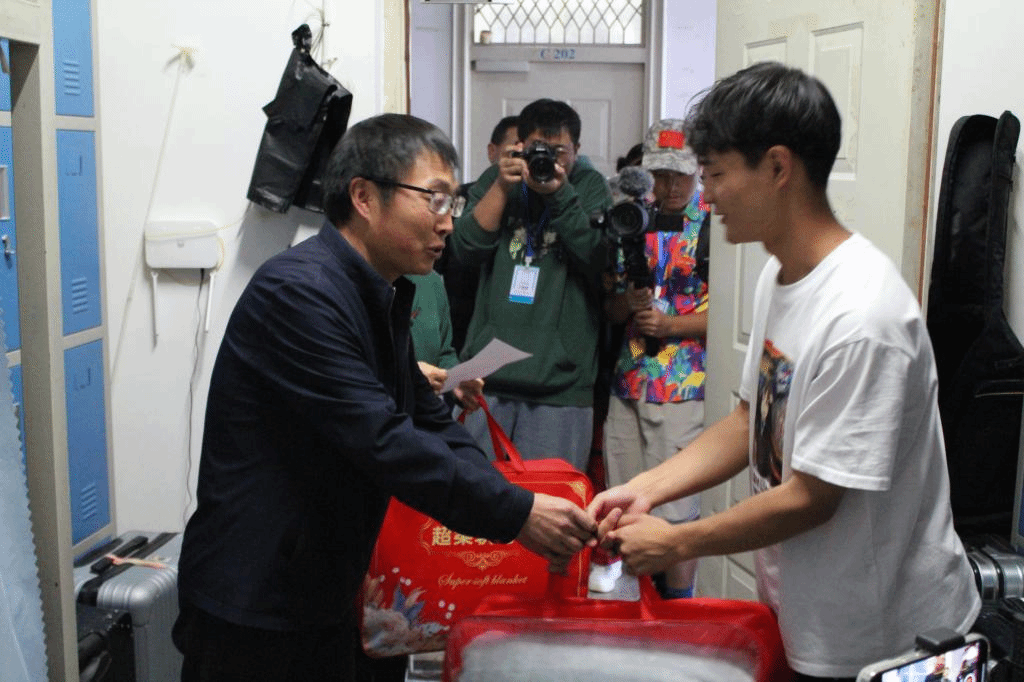 11月14日下午,校党委书记牛定柱,学院党总支书记高昆及22级辅导员一同来到绘水苑6栋、7栋宿舍,将寒衣(毛毯)交到受助同学手上,与同学们亲切交谈,了解学生们的学习和生活情况。在交谈中,牛书记勉励受助同学要常怀感恩之心,努力学习,自立自强,将来为学校和社会做贡献。