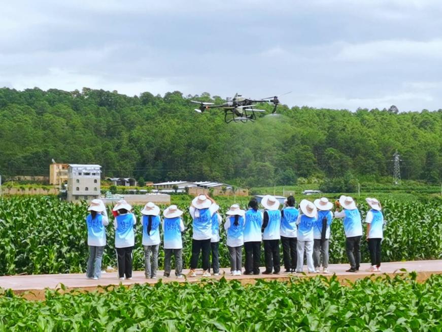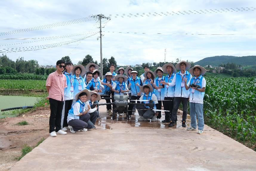 随后,队员们到农产品种植基地的标准化农田参观,基地工作人员为大家演示了农用型无人机农药播撒的工作流程,以及如何利用无人机进行精准作业。