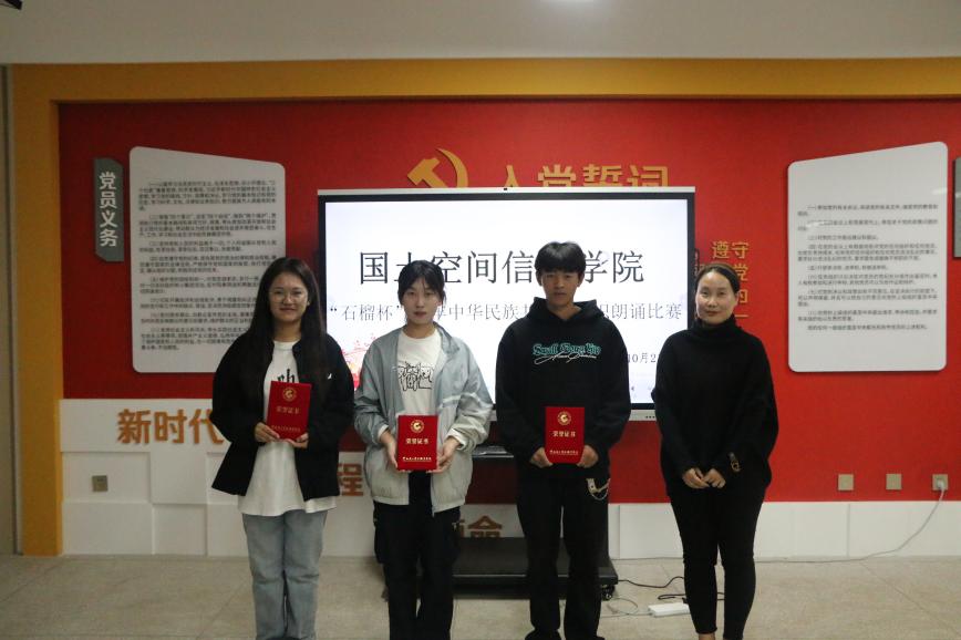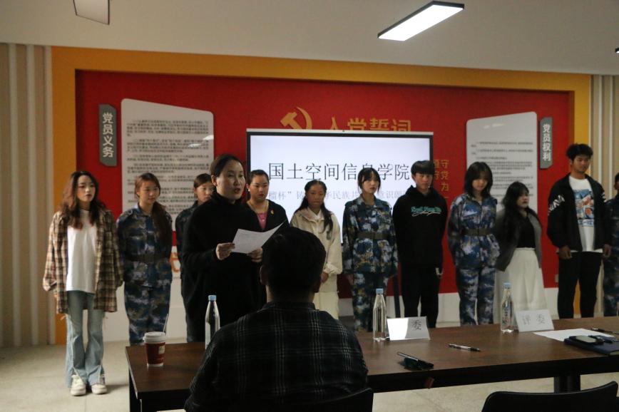 为全面贯彻落实中央和省委民族宗教工作会议精神,传承和弘扬红色精神与民族团结精神,进一步激发同学们的爱国情怀,新葡8883官网AMG官网于10月21日在勘物楼A609举行“筑基培元绽芳华”之“石榴杯”铸牢中华民族共同体意识朗诵比赛。本次比赛邀请了学院党委副书记和万荣,团总支负责人马佳,孙嘉蔚、裴凤娟、史鹏飞共5位老师担任比赛评委。