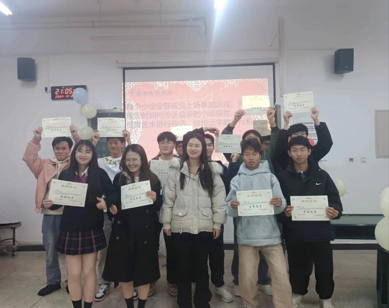 表演结束后,主持人精心设计了“你划我猜”“含水传话”“关键字反应”等小游戏,同学们纷纷热情地加入其中。在游戏中,大家展现出了卓越的团队精神,相互协作,共同努力,不仅加深了彼此间的默契,也增强了班级的凝聚力。