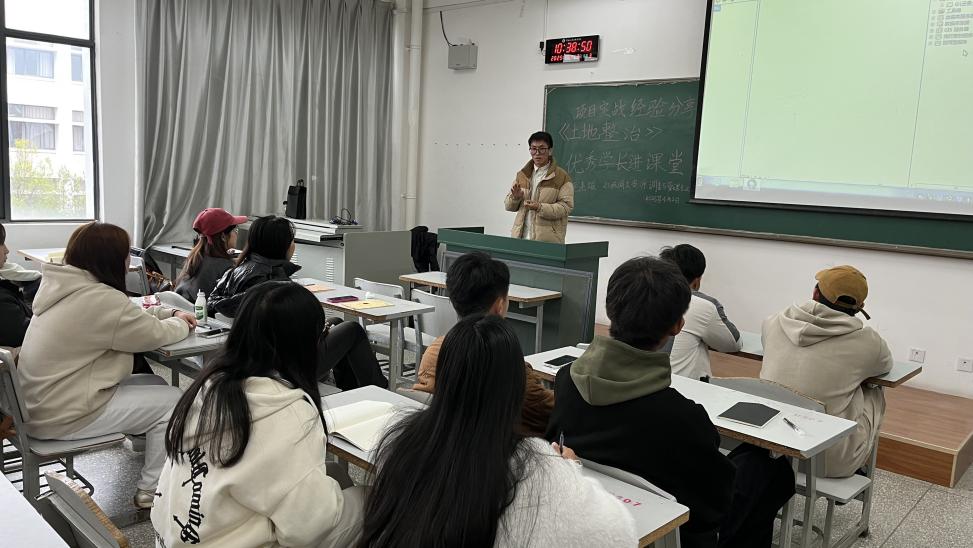在许林艳副教授的协调下,毛光雄来到了《土地整治》课堂。他紧密结合自身工作实践,讲解了常见的专业问题以及软件操作技巧,并通过现场演示和专业分析,帮助学弟学妹们更好地理解和掌握相关知识。