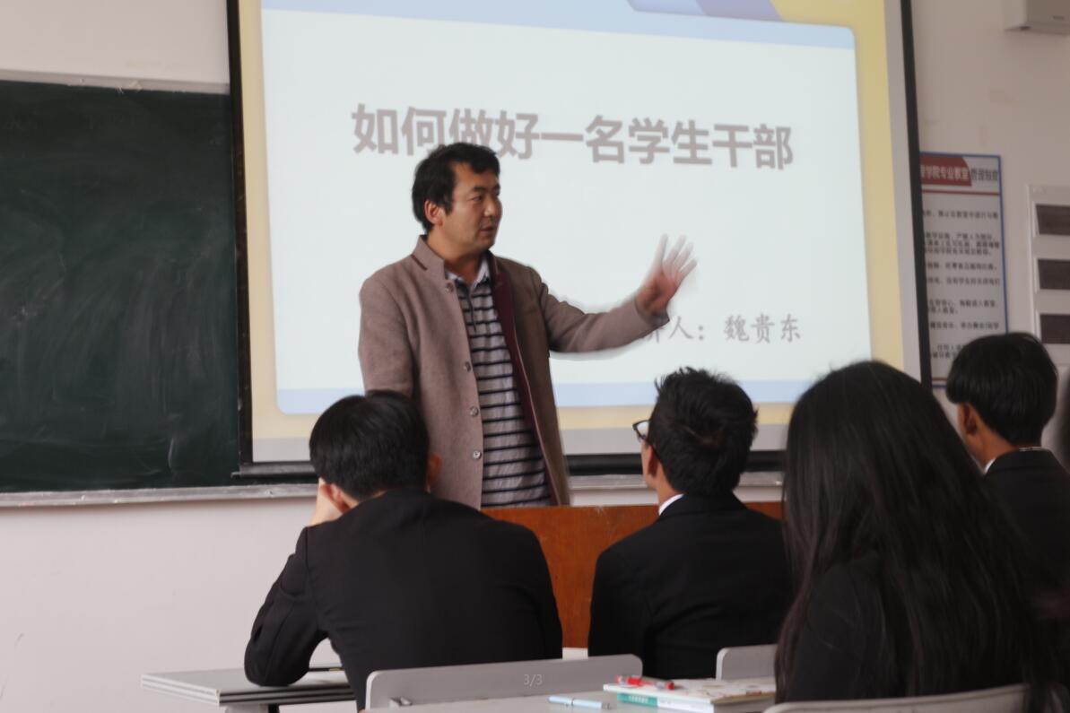 为增强学生干部综合素质,提高自我管理意识。2019年3月11日中午12:40,国土管理学院第三期“青马工程”干部培训第一讲在堪物楼B213正式开讲。国土管理学院学工办主任魏贵东老师为培训学员作“如何做好一名班干部”讲座,学生会各部门负责人、18级各班班干部共计174人参加此次培训。