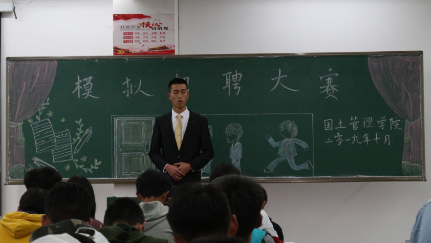 为帮助广大同学树立职场求职意识,让学生提早对招聘和求职有一个真实、客观的了解,全力做好国土管理学院就业服务工作,新葡官网于2019年10月17日晚19:00点在勘物楼B316举行模拟求职大赛。担任本次比赛的评委有新葡官网党总支副书记张俊妍老师、团总支书记申锦华老师,辅导员张甲子老师、赵烨老师。