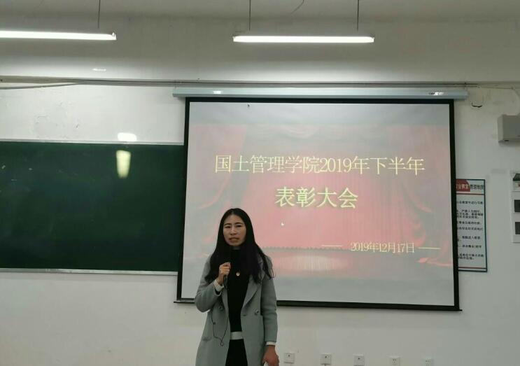 2019年12月17日下午17:30,国土管理学院在勘物楼B313举行了国土管理学院2019年下半年表彰大会。国土管理学院团总支副书记申锦华老师、辅导员赵烨老师、张甲子老师,18、19级同学代表参加了此次表彰大会。