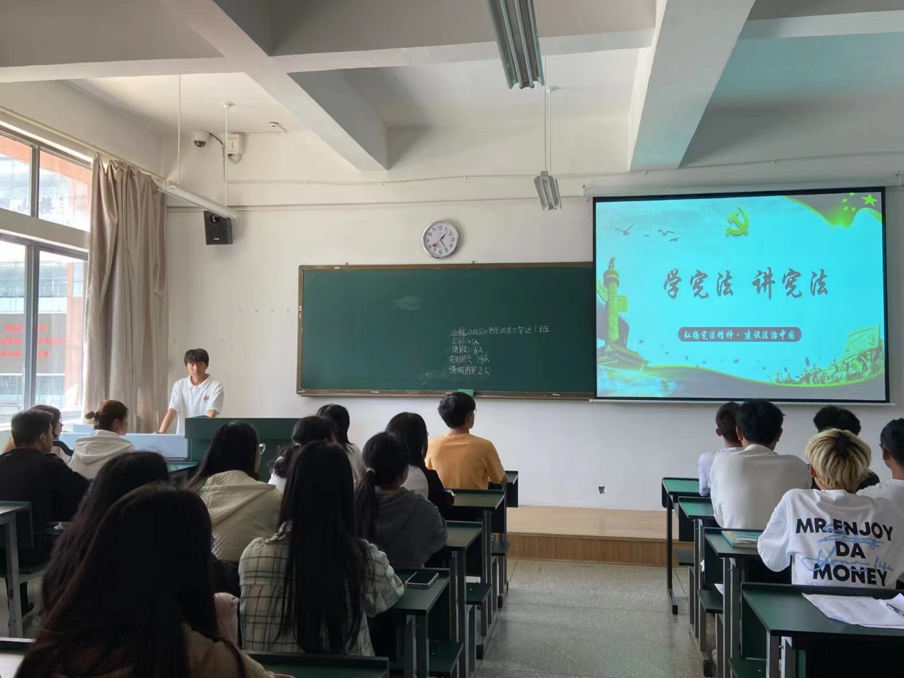 宪法是我国的根本大法,通过宪法相关知识的学习,引导同学们尊重宪法,捍卫宪法和弘扬宪法精神。同学们深刻认识到宪法和法律是必须遵守的,是神圣不可侵犯的,进一步增强了对宪法和法律的敬畏感、责任感、使命感。希望同学们将宪法精神更好地融入今后的学习、生活中去,为实现中华民族伟大复兴的中国梦添砖加瓦。