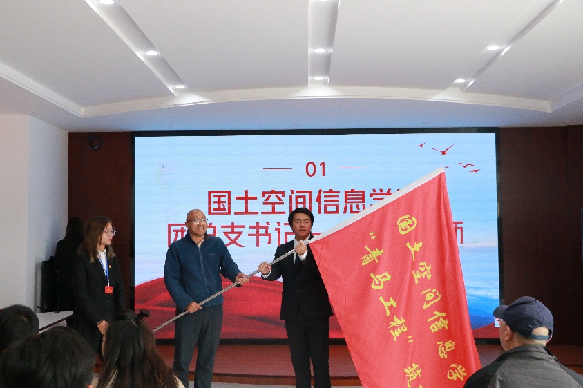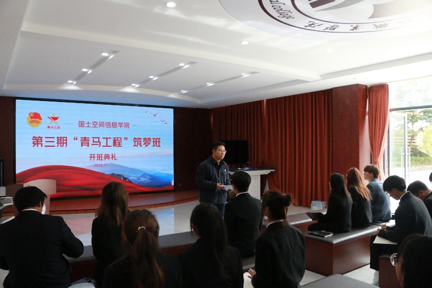 开班仪式上学院党总支副书记和万荣为第三期“青马工程”筑梦班授班旗。学院团总支负责人马佳在致辞中对参与本期培训的学员们致以诚挚祝贺,介绍了本期培训安排,希望学员们珍惜学习机会,在培训感受马克思主义真理的光辉,努力在理论学习、班级建设、服务同学、社会实践等各方面当先锋、作表率。