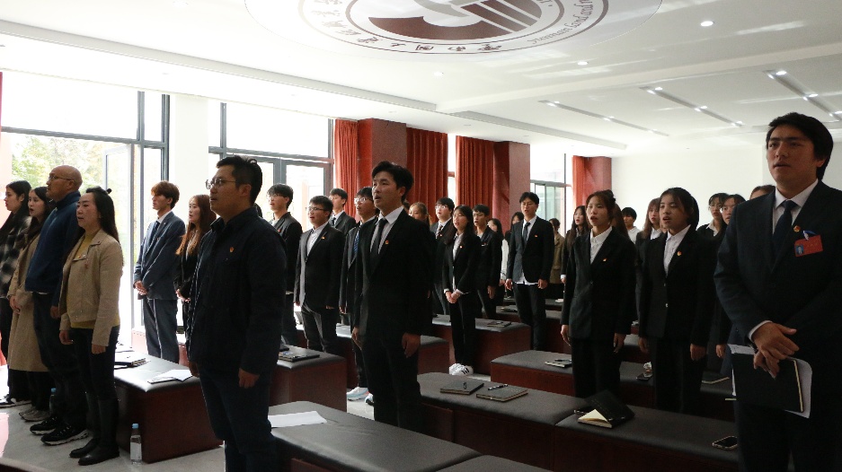 陈锐琪同学代表第三期“青马工程”筑梦班全体学员发言,讲到团干部担起责任与使命,积极弘扬马克思主义,成为伙伴们的同路人、领路人,感召身边更多的青年读懂马克思,弘扬正能量,实现青春梦。接着,全体学员重温入团誓词,高声唱响团歌,开班仪式到此结束。