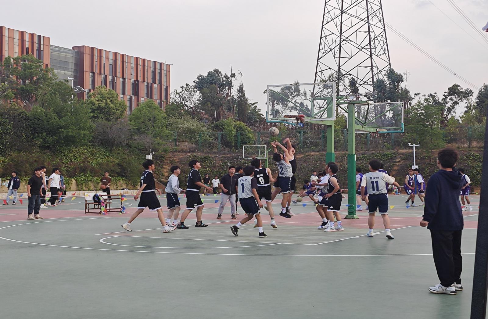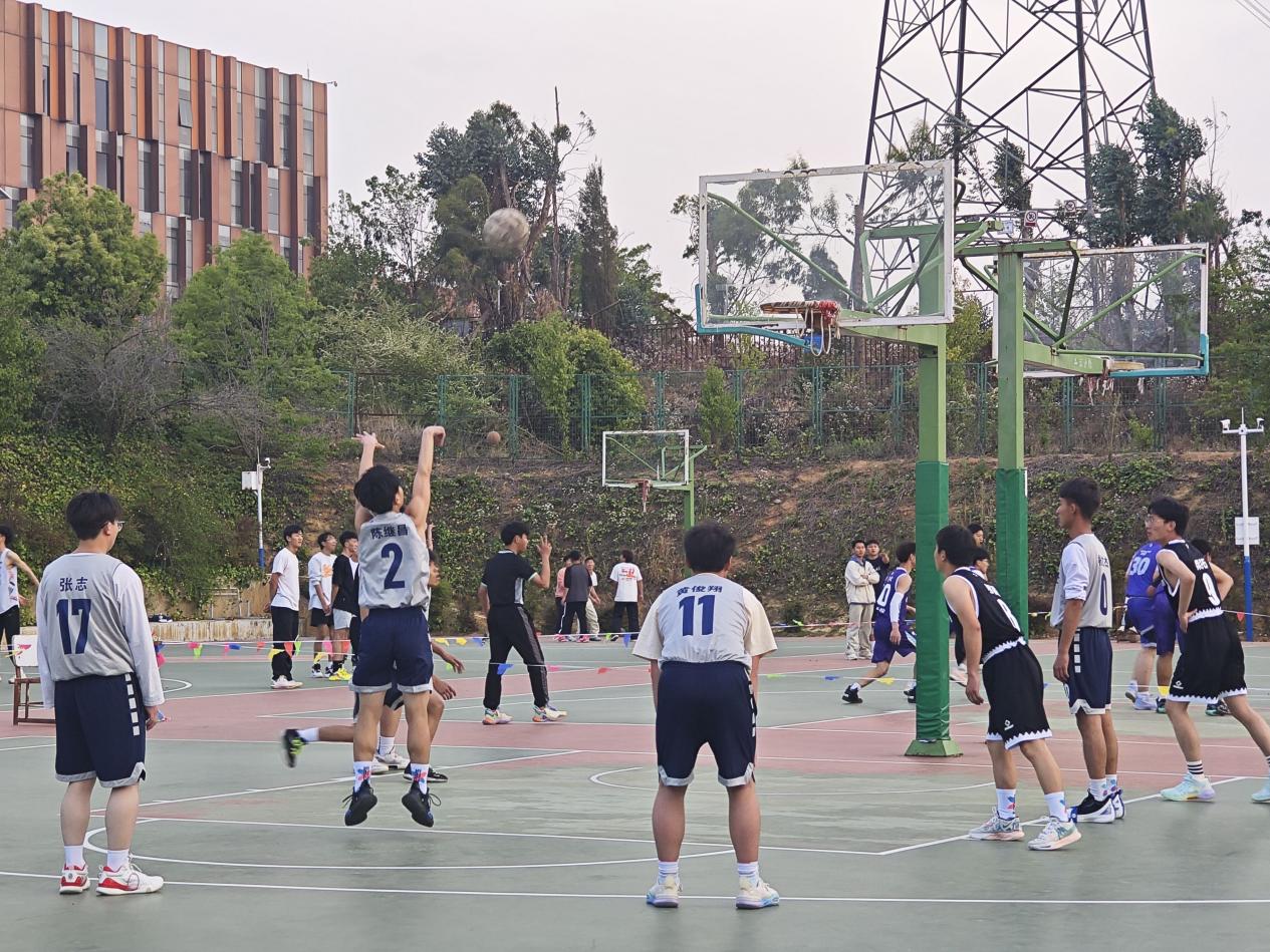 赛前,“三班精英,敢打敢拼,篮球赛场,勇争第一”的口号响彻赛场,展现了队员们昂扬向上的精神风貌。随着裁判的哨响,整个球场充满了紧张的氛围,参赛队员们将激情淋漓尽致地体现在球场上。他们熟练运球、突破、拼抢、反攻、上篮,动作行云流水,彼此间默契十足。在场观赛的同学们也情绪高涨、摇旗呐喊,不时为队员打气、喝彩。