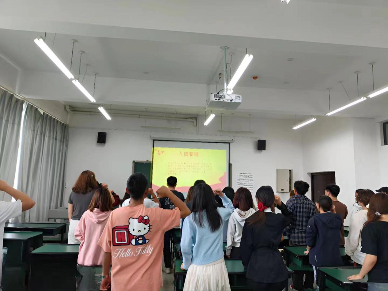 接着,卢芳欣带领同学们重温入团誓词,唱团歌,以此激励大家牢记共青团员的使命与责任,并强调身为大学生要以切身实际行动弘扬社会主义核心价值观,为社会的发展贡献属于自己的力量。