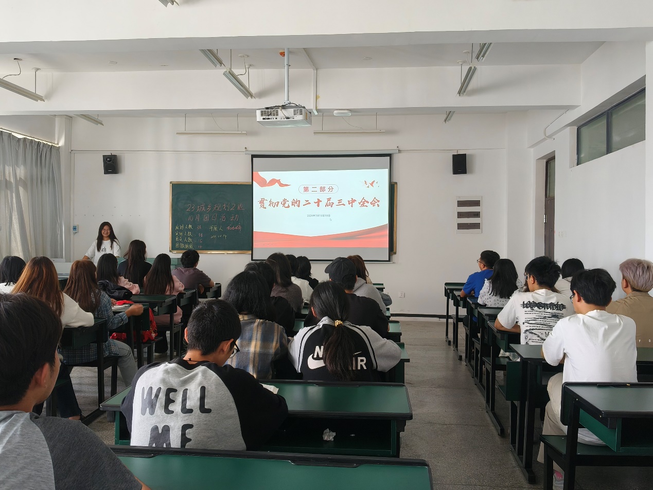 10月14日,2023级城乡规划 2 班在勘物楼B505开展了10月主题团日活动。
