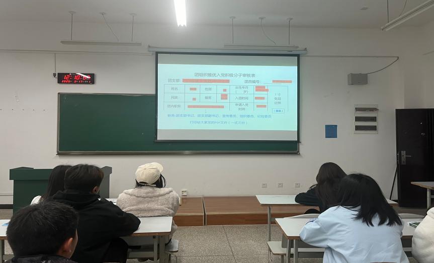 卢芳欣根据《共青团推优入党工作实施办法(试行)》文件,向同学们详细解读了“推优入党”工作的具体流程、标准和要求。她强调“推优”是党组织发展党员的重要环节,各团支部要严格按照程序进行推荐,确保公平、公正、公开,杜绝任何形式的偏私偏袒、徇私舞弊、虚假作假等现象发生,以保障“推优入党”工作的严谨性和权威性。同时,她鼓励各团支部积极挖掘优秀团员,为党组织输送新鲜血液。